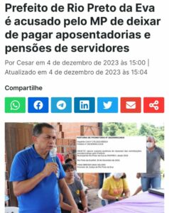 A comunidade de Rio Preto da Eva merece uma gestão comprometida com a ética, a transparência e o bem-estar dos cidadãos. É urgente que as autoridades competentes investiguem e responsabilizem aqueles que desrespeitam o interesse público e dilapidam os recursos da cidade.