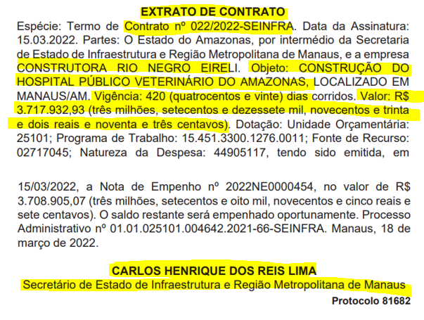 Em 2022, a deputada Joana Darc anunciou que, com a ordem de serviço assinada pelo governador Wilson Lima, o primeiro hospital público veterinário do estado começaria a ser construído. A previsão de investimento inicial era de R$ 3,7 milhões, mas a realidade hoje é bem diferente. Em 2023, o valor já ultrapassou os R$ 5 milhões, sem que a obra tenha saído do papel. Não só os custos aumentaram, como também surgiram sucessivos aditivos no contrato, sem uma explicação convincente de sua necessidade.