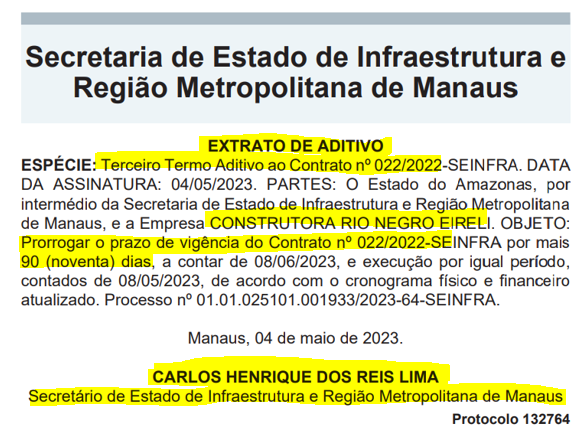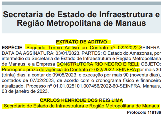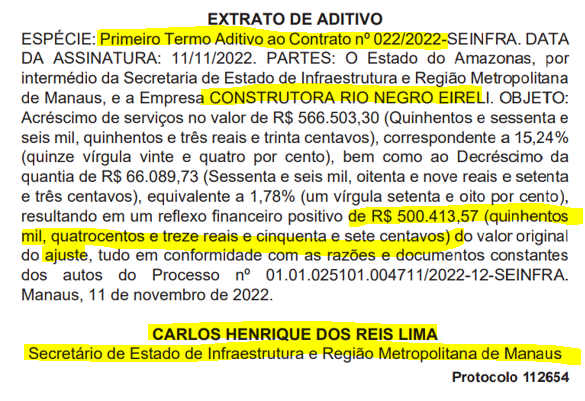 Os primeiros aditivos ao contrato, de valores superiores a R$ 500 mil, ocorreram ainda em novembro de 2022.