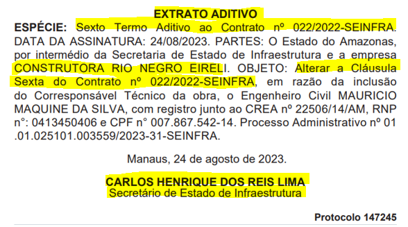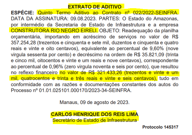 O mais recente em agosto de 2023, quando a secretaria elevou o quinto termo aditivo no valor de R$ 321.433,26, elevando ainda mais o custo da obra.