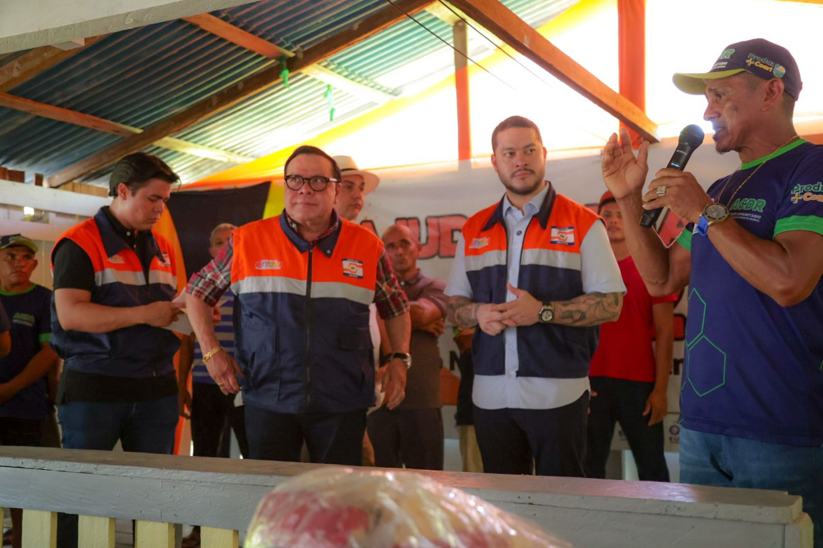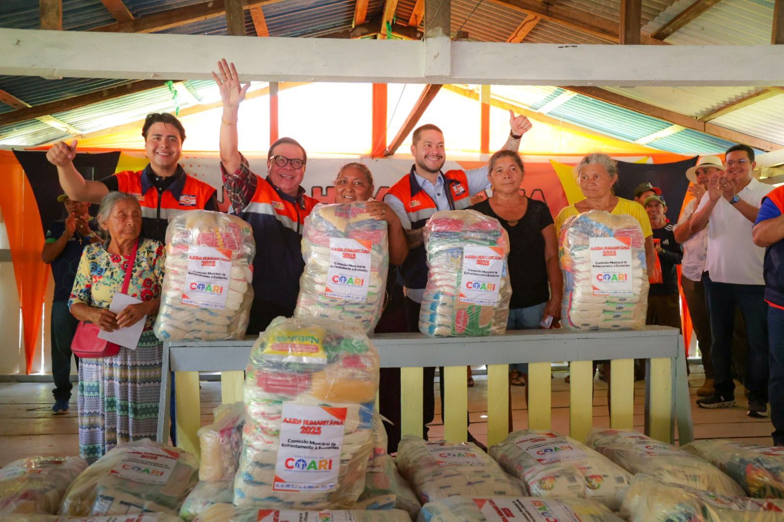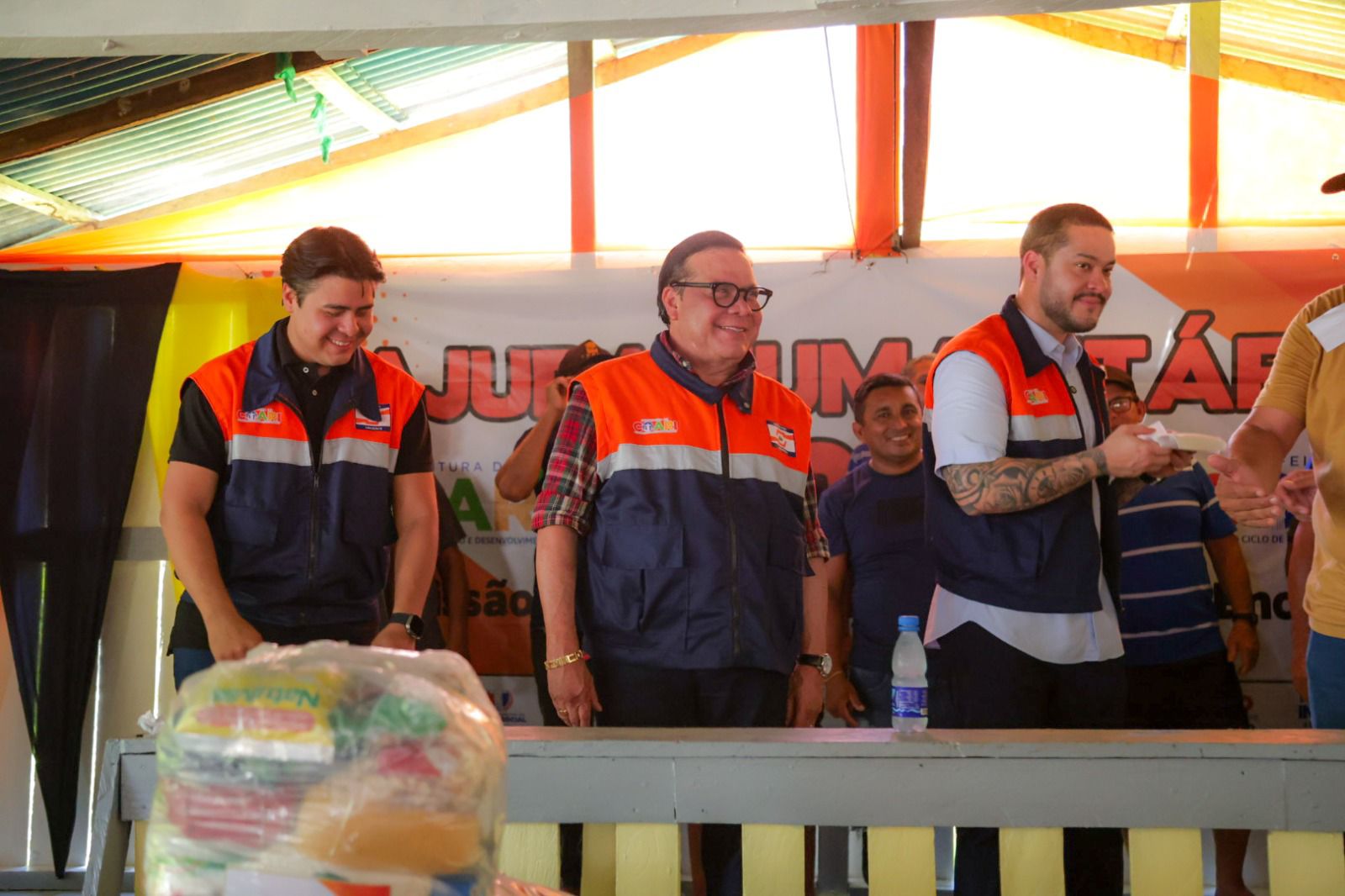 Acompanhado do prefeito de Coari, Adail Pinheiro, e do vice-prefeito Emanoel Pinheiro, Adail Filho entregou cestas básicas, tanques para armazenamento de água e proporcionou atendimentos de saúde, beneficiando diretamente mais de 300 famílias de 12 comunidades da zona rural.