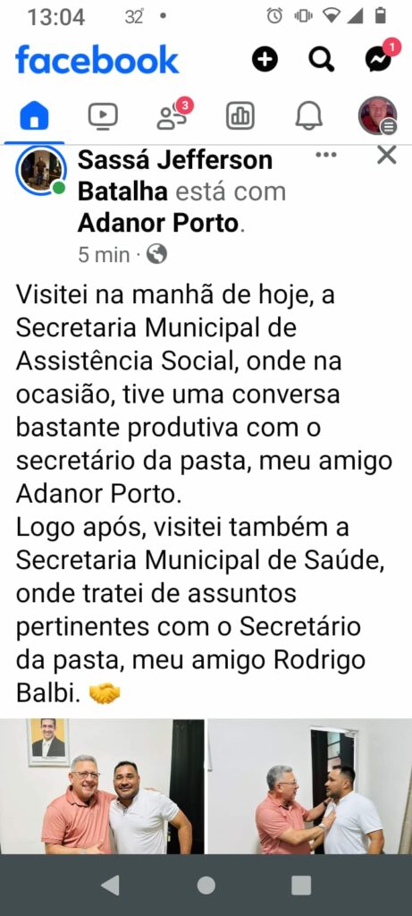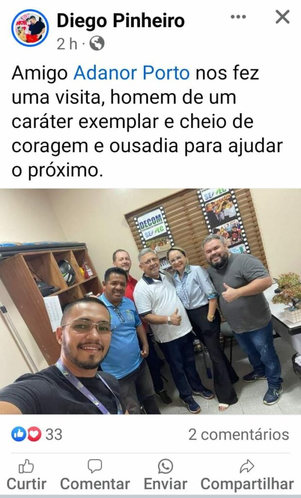 A denúncia destaca que Adanor Porto, considerado o braço direito do irmão na administração de Manacapuru, estaria exercendo suas funções como secretário municipal enquanto se prepara para a candidatura.