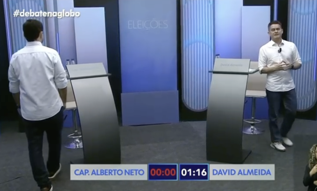 Durante o debate, David Almeida permaneceu em seu lugar, respeitando o tempo de fala do adversário. No entanto, a reciprocidade não foi uma prioridade para Alberto Neto. Quando David começou a expor seu histórico político — que inclui cargos como deputado estadual, presidente da Assembleia Legislativa do Amazonas e governador interino — e a ressaltar sua ficha limpa, Alberto Neto interrompeu bruscamente, invadindo o espaço do oponente.