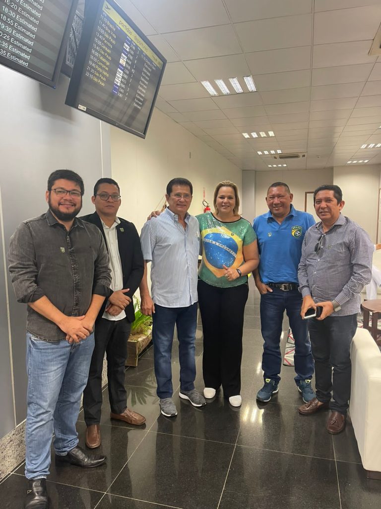 Alfredo Nascimento recepcionou o presidente Bolsonaro no Aeroporto Internacional Eduardo Gomes, junto a presidente da Virada Feminina do Amazonas, Cileide Moussallem, e representantes da Associação Brasileira de Blogs e Portais (ABRABP).