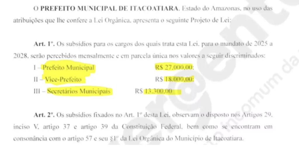 Amazonas – Após ser reeleito com uma margem confortável de 54,98% dos votos, o prefeito de Itacoatiara, Mário Jorge Abrahim (Republicanos), parece mais preocupado em aumentar seu próprio salário do que em atender às demandas da população que o elegeu. Com a proposta de um aumento salarial para si, para a vice-prefeita e para os secretários municipais, Abrahim levanta questionamentos sobre suas prioridades enquanto gestor público.