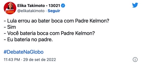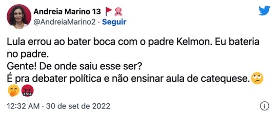 Apoiadores de Lula e a candidata a deputada no Rio de Janeiro, Elika Takimoto, expressaram pelas redes sociais desta última quinta-feira (29) o desejo de agredir o padre Kelmon, um dos algozes do petista.
