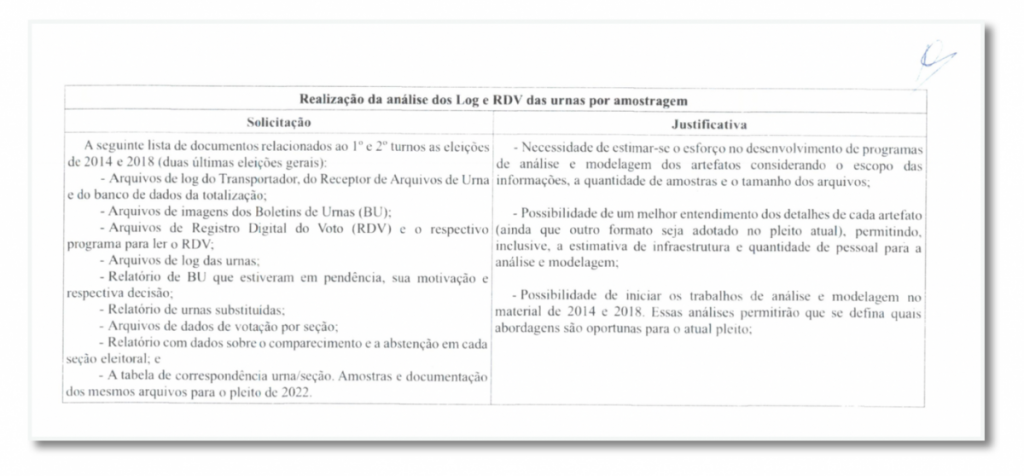 “Solicito a Vossa Excelência a disponibilização dos códigos-fontes dos sistemas eleitorais, mais especificamente do Sistema de Apuração (SA), do Sistema de Votação (VOTA), do Sistema de Logs de aplicações SA e VOTA e do Sistema de Totalização (SisTot), que serão utilizados no processo eleitoral”, diz o documento, que chegou à Corte nesta segunda-feira (1º).