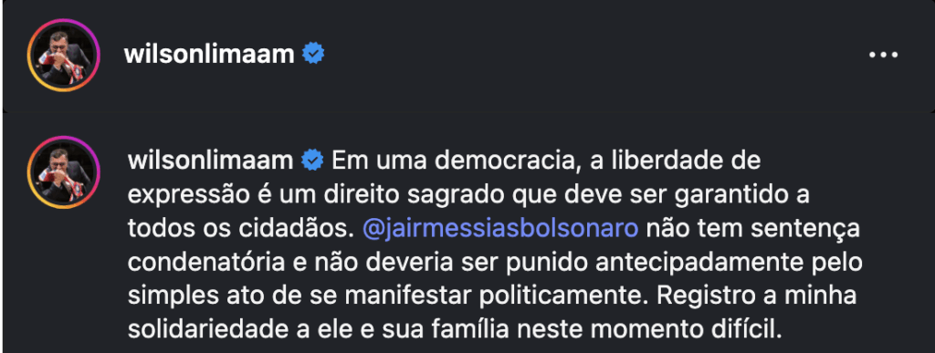 Após ignorar as manifestações “Reaja Brasil”, Wilson Lima se manifesta contra prisão de Bolsonaro