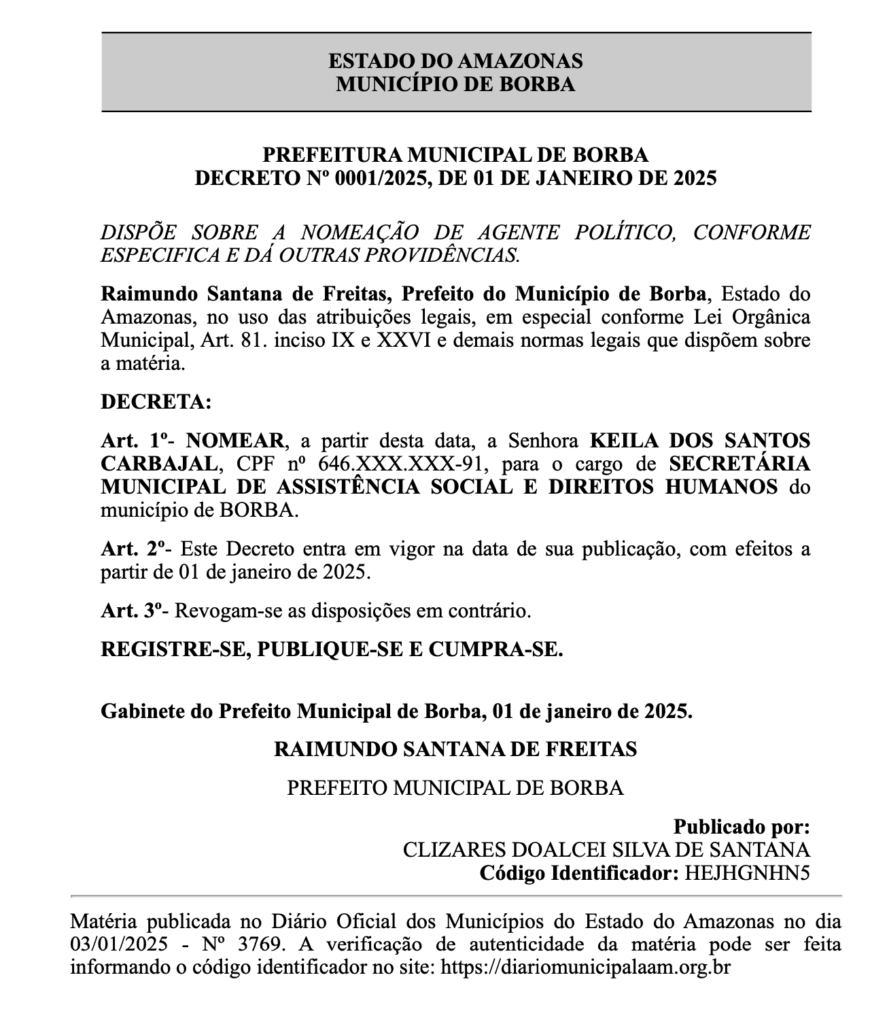 Nas redes sociais, Keila se apresenta como “Primeira Dama do município de Borba-AM”, além de empresária e mãe. A nomeação da esposa para uma das pastas mais sensíveis da administração gerou críticas sobre possível conflito de interesses, especialmente em políticas públicas voltadas para a população mais vulnerável.