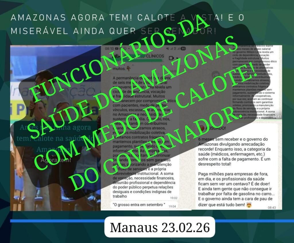 Manaus – Enquanto o governo do Amazonas divulga arrecadações recordes, profissionais da saúde amargam até oito meses sem salários. O temor generalizado é de que o governador renuncie para disputar o Senado, deixando para trás um sistema em colapso e um calote histórico nas cooperativas médicas.