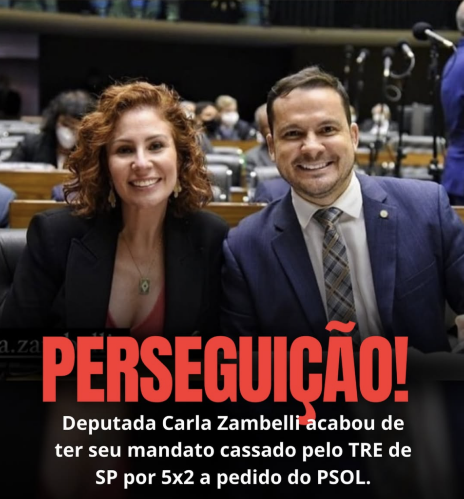 “Perseguição política, este é o nome da decisão do TRE-SP, que nesta quarta-feira, 30/01, cassou o mandato da deputada federal @carla.zambelli. É mais uma prova que a justiça está caçando a direita em todas as esferas, tentando anular nossos valores. Mas a direita é unida e vai seguir lutando contra essa ditadura judicial para que os votos dos eleitores sejam honrados e o Brasil siga livre e com a sua democracia preservada.”