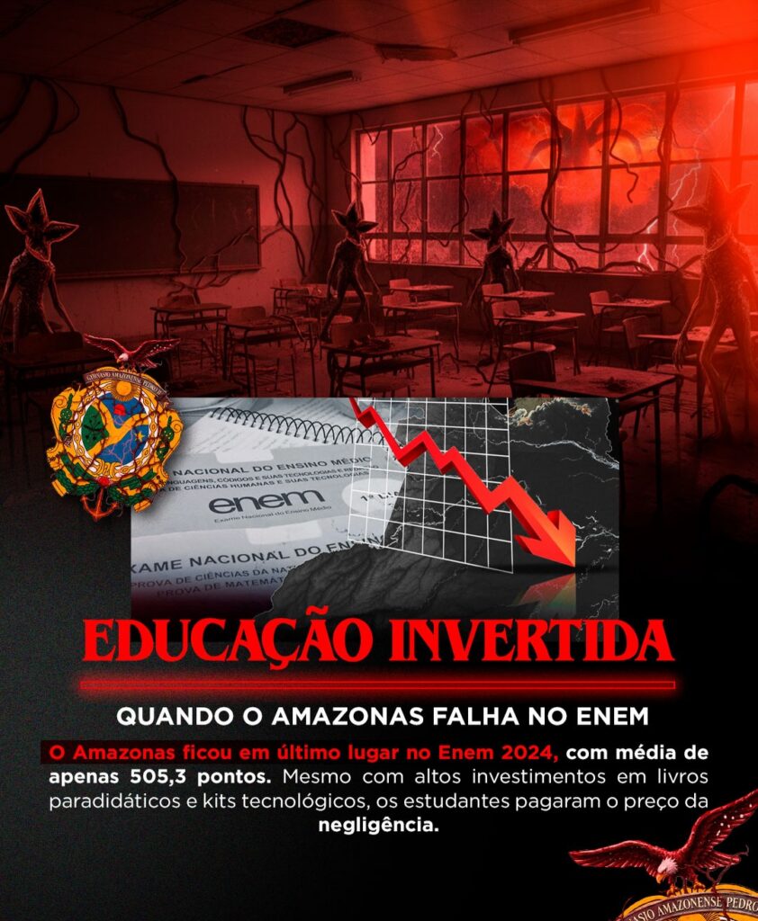 O primeiro cenário apontado como “invertido” é a educação estadual. A denúncia destaca que, apesar dos altos investimentos divulgados em material paradidático e kits tecnológicos, a realidade da sala de aula é desoladora. O Amazonas amargou o último lugar no Enem 2024, com uma média de apenas 505,3 pontos. Para o deputado, os estudantes estão “pagando o preço da negligência”, onde o dinheiro gasto não se converte em aprendizado real.