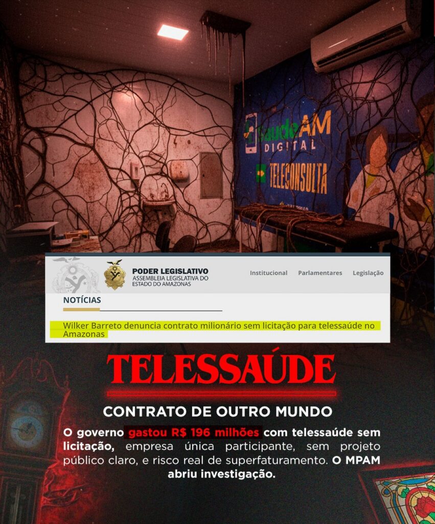 Na área da saúde, o foco recai sobre um contrato de R$ 196 milhões destinado ao serviço de Telessaúde. Segundo a denúncia de Wilker, o acordo foi firmado sem licitação, com uma empresa única participante e sem um projeto público claro que justificasse o montante. O caso, que já motivou a abertura de investigação pelo Ministério Público do Amazonas (MPAM), é classificado pelo parlamentar como um risco real de superfaturamento em uma área sensível para a população.