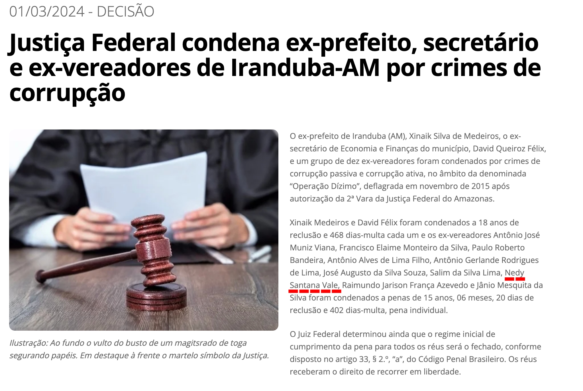 Outro nome que chama atenção é o do ex-vereador de Iranduba, Nedy Santana do Vale. Ele foi visto ao lado da pré-candidata durante evento no município e, segundo informações, atua como coordenador de campanha na região. Nedy foi condenado em primeira instância pela Justiça Federal a 15 anos e 6 meses de prisão por crimes como corrupção e formação de quadrilha. Apesar disso, também se apresenta como pré-candidato a deputado estadual pelo partido NOVO.