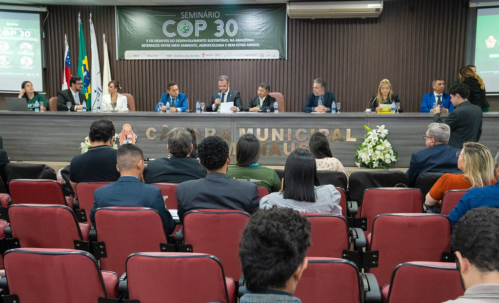 Manaus -A poucos meses da 30ª Conferência das Nações Unidas sobre as Mudanças Climáticas (COP30), que será realizada em Belém (PA), a Câmara Municipal de Manaus (CMM) abriu espaço para um debate essencial: como enfrentar os desafios do desenvolvimento sustentável a partir da Amazônia. Na manhã desta terça-feira (8 de julho), o auditório Zany dos Reis, na Casa Legislativa, recebeu autoridades, especialistas, ambientalistas, estudantes e representantes da sociedade civil para o Seminário COP30: Os Desafios do Desenvolvimento Sustentável na Amazônia.