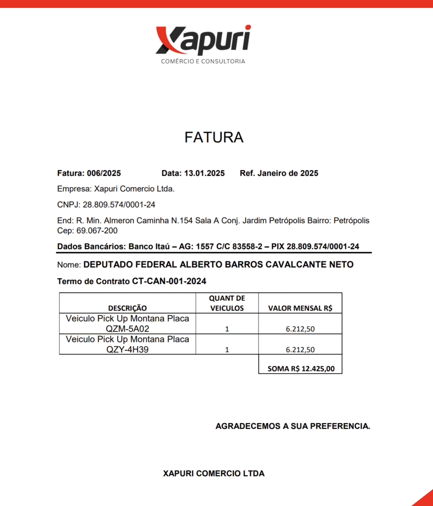 Curiosamente, a empresa Xapuri também aparece nas despesas de outro conservador, o deputado federal Capitão Alberto Neto (PL-AM), aliado político de Rosses no mesmo partido. Coincidência? No retorno do recesso parlamentar, Alberto Neto alugou duas picapes com verba parlamentar por R$ 12 mil, da mesma empresa. Os veículos foram usados entre os dia 1° e 28 fevereiro de 2025, no período de recesso do deputado. Além disso, ao longo do ano, Alberto Neto, contratou a mesma empresa e declarou R$ 111.825,00 com a Xapuri. Mas será que Rosses irá fazer um vídeo denunciando a ostentação do próprio aliado? É como diz o ditato: “tigrão” com a oposição, tchutchuca com o amigão”.