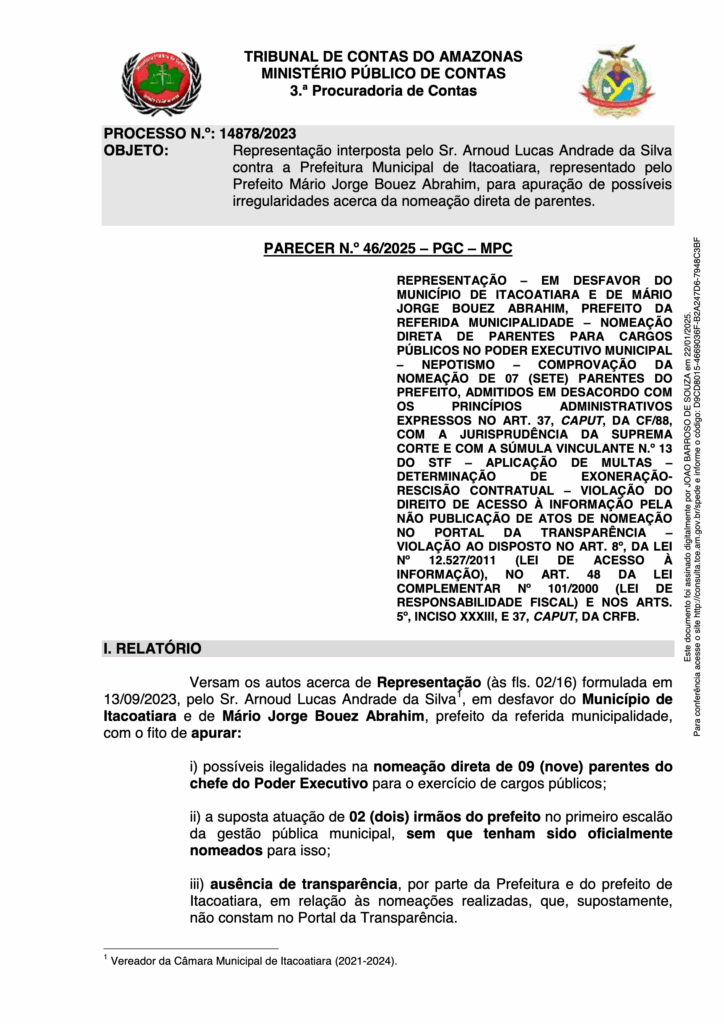 Desde janeiro, a rotina política no município tem sido marcada por ações do Ministério Público, decisões do Tribunal de Contas do Estado (TCE-AM) e críticas da oposição. As acusações vão de nepotismo e reajustes salariais suspeitos até licitações controversas e falhas graves na transparência das contas públicas.