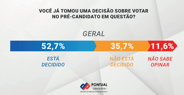 Além disso, 6,8% dos eleitores não quiseram opinar sobre a rejeição, e 7,6% afirmaram que votarão em branco ou nulo.