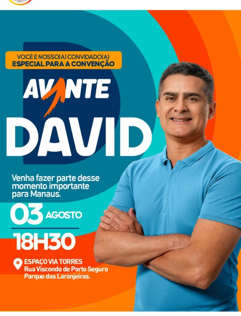 Manaus – No próximo dia 3 de agosto, às 18h30, David Almeida oficializa sua candidatura à reeleição como prefeito de Manaus em um evento que promete ser um marco na campanha eleitoral. A convenção será realizada no Espaço Via Torres, situado na Rua Visconde de Porto Seguro, no Parque das Laranjeiras.