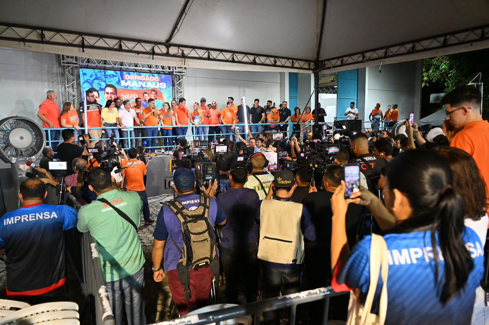 “É uma honra, um privilégio disputar uma eleição e chegar a esse número no primeiro turno. Principalmente numa disputa contra adversários qualificados, máquinas, patrícios políticos, tudo isso. Eu tenho Deus e o povo como padrinhos. Agora, a eleição muda, ela vira um plebiscito, né? Zera! É uma ótima eleição. Vamos trabalhar no campo das ideias, das propostas e das opiniões para a cidade de Manaus”, declarou David Almeida durante coletiva de imprensa.