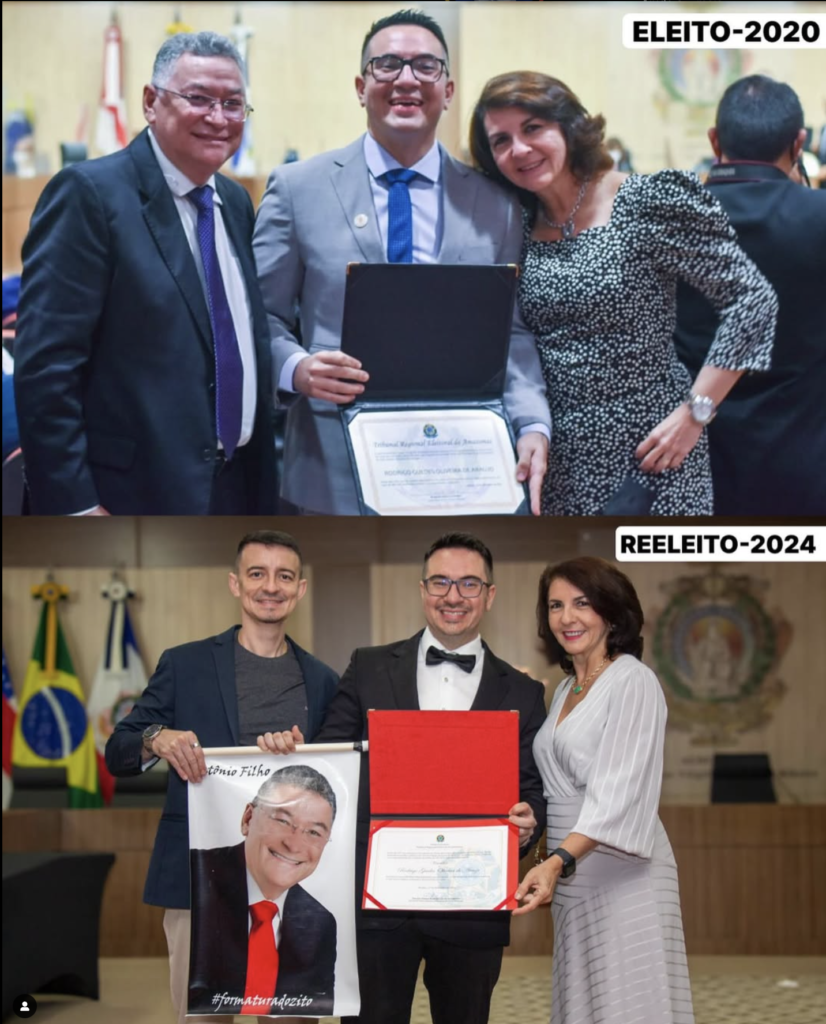 O dia foi ainda mais marcante para Rodrigo Guedes, que comemorou seu aniversário e sua diplomação como vereador reeleito de Manaus no mesmo evento. Em suas redes sociais, Guedes compartilhou um relato emocionado sobre a data, destacando que há exatos quatro anos ele vivia o mesmo momento, ao lado de seus pais.