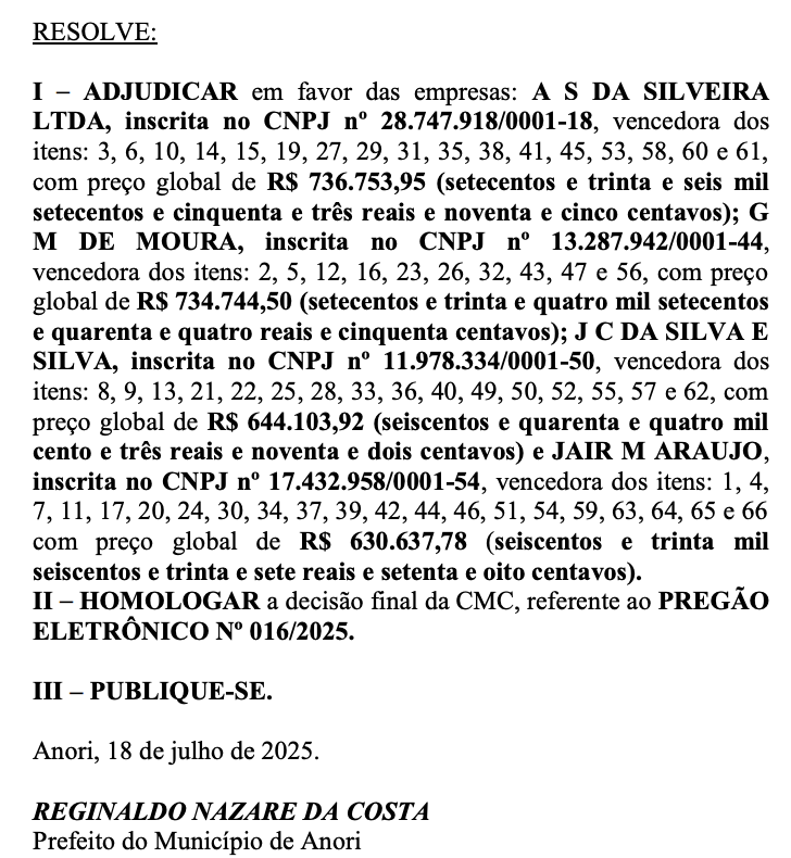 Denúncia: Prefeito de Anori vai gastar quase R$ 3 milhões em contratos suspeitos; veja documentos