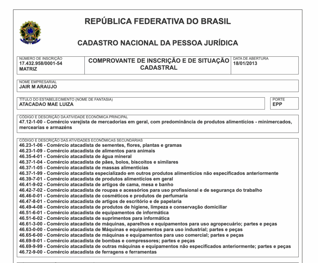 JAIR M ARAÚJO – CNPJ nº 17.432.958/0001-54 – valor de R$ 630.000,00