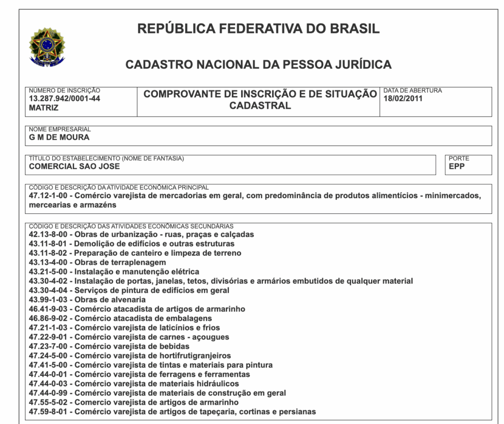 G M DE MOURA – CNPJ nº 13.287.942/0001-44 – valor de R$ 734.000,00