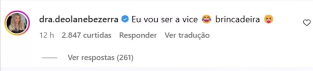 A declaração de Deolane sobre ser “vice” gerou uma avalanche de memes e especulações online. Os internautas rapidamente lembraram a história dos dois, que já compartilharam um momento polêmico: ambos foram investigados na Operação Integration da Polícia Federal, que apura lavagem de dinheiro por meio de empresas de apostas. Embora Gusttavo Lima tenha tido seu caso arquivado pelo Ministério Público, Deolane e sua mãe, Solange Bezerra, ainda respondem como investigadas após terem sua prisão preventiva revogada.