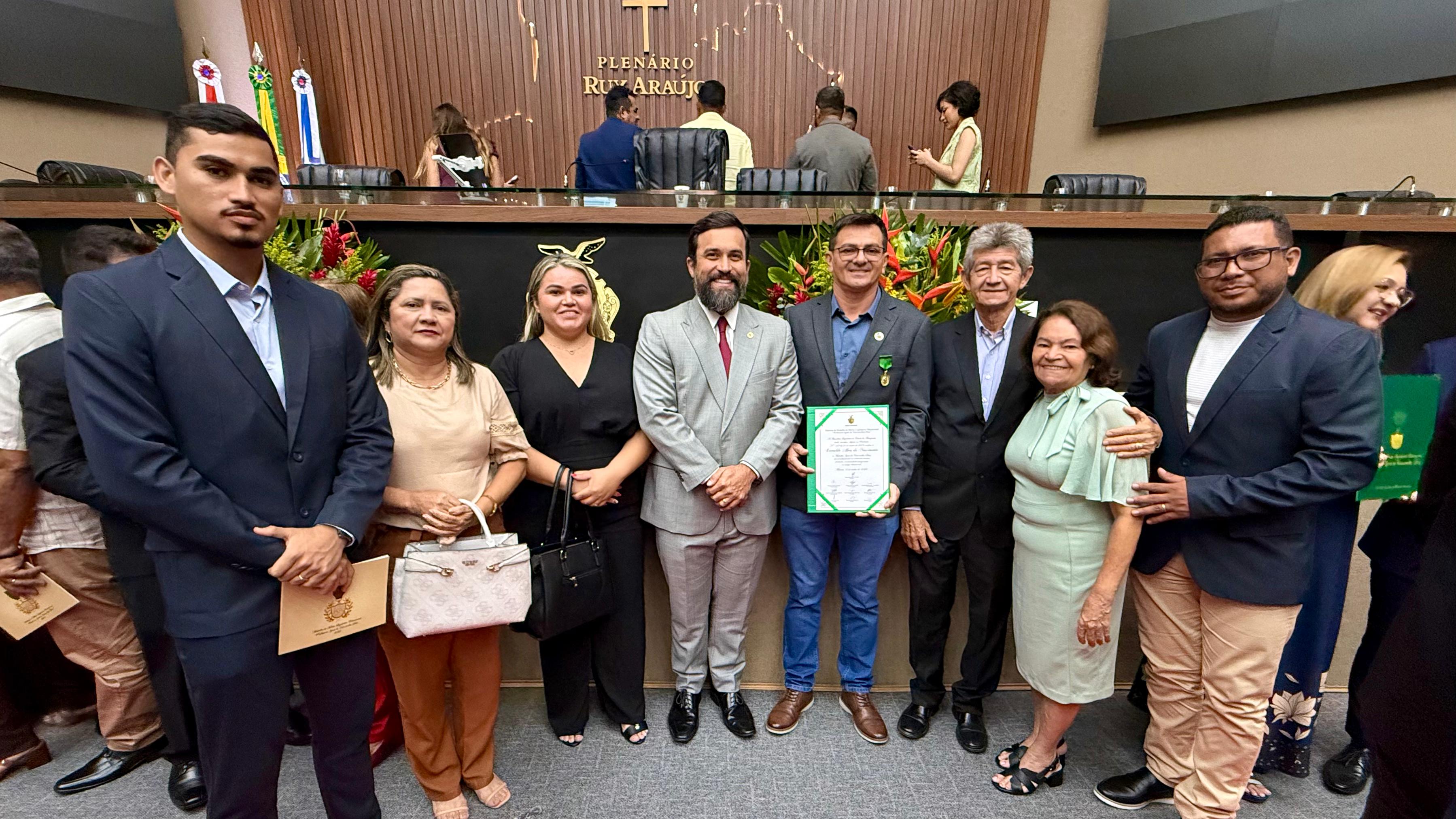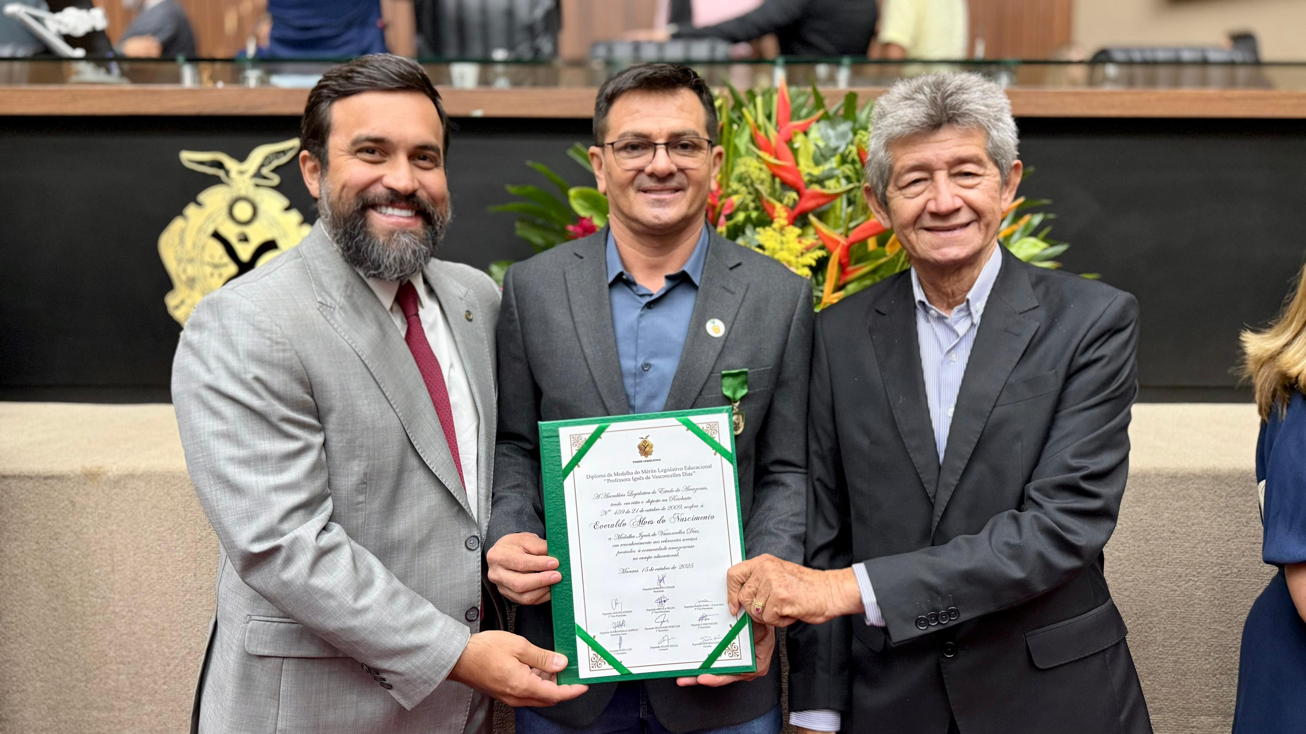 Amazonas -Em reconhecimento aos importantes serviços prestados à educação de Novo Aripuanã, o deputado estadual Dr. George Lins (UPB) entregou nesta quarta-feira (15/10) a Medalha do Mérito Legislativo Educacional Professora Ignês de Vasconcellos Dias ao vereador e professor Everaldo Alves do Nascimento. A honraria, concedida anualmente pela Assembleia Legislativa do Estado do Amazonas (Aleam), celebra educadores que se destacam pela dedicação e contribuição à formação de gerações.