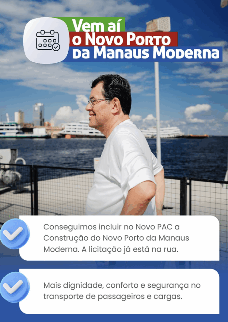 Um dos marcos do semestre foi o início das obras do novo Porto da Manaus Moderna, resultado de anos de empenho do senador em garantir o projeto no orçamento da União e acelerar sua liberação. A construção do porto é vista como uma revolução logística para a capital, com impacto direto no comércio regional e no transporte fluvial de cargas.