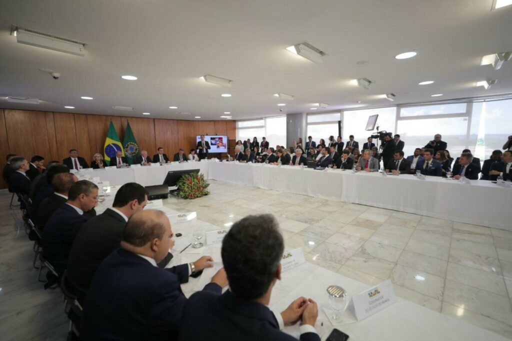 “O encontro hoje aqui com o presidente, com os ministros, com os poderes, com o Congresso Nacional, é importante para que a gente possa estar na mesma página, entender e trocar experiências sobre o que estão fazendo outros estados nesse sentido, quais as iniciativas, mas aqui, pelos discursos, a gente tem um pensamento comum, a repressão tem um limite e a gente tem que efetivamente trabalhar a pessoa, trabalhar o ser humano, trabalhar o aluno para que a gente possa ter essa cultura de paz dentro das unidades de ensino”, avaliou o governador Wilson Lima.