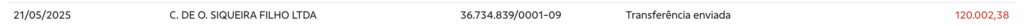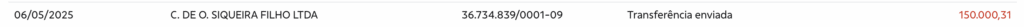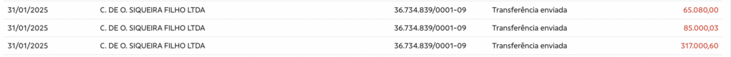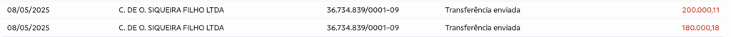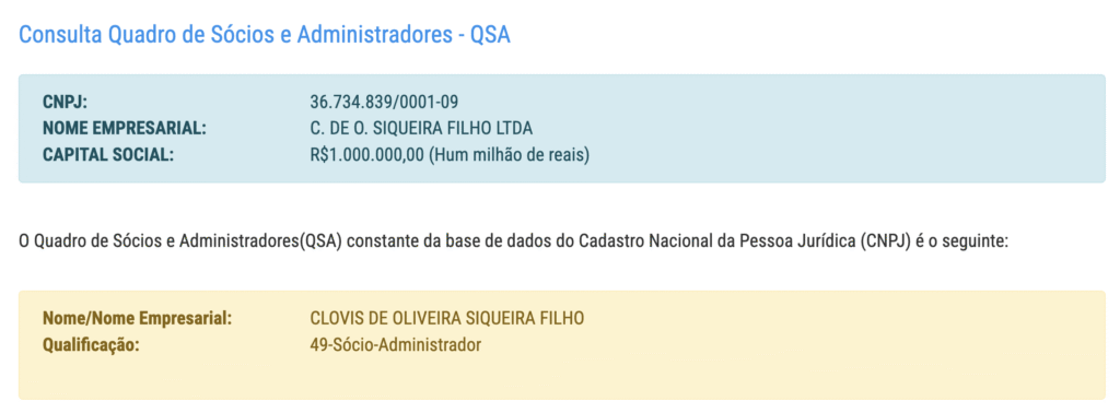 E onde foi parar o dinheiro? Uma parte significativa parece ter encontrado abrigo na C. DE O. SIQUEIRA FILHO LTDA / Distribuidora Siqueira Comércio e Consultoria LTDA, registrada no CNPJ 36.734.839/0001-09, com capital social de R$ 1 milhão, pertencente ao empresário Clóvis de Oliveira Siqueira Filho.
