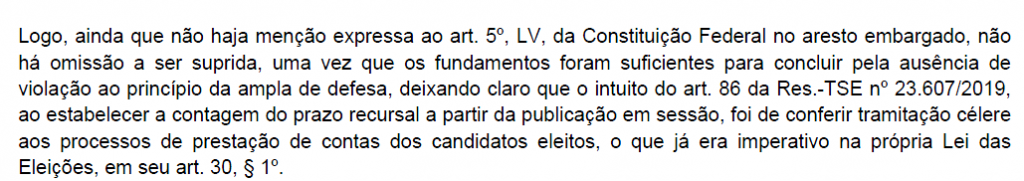 “(…) não há omissão a ser suprida, uma vez que os fundamentos foram suficientes para concluir pela ausência de violação ao princípio da ampla defesa (…)“, disse o magistrado.