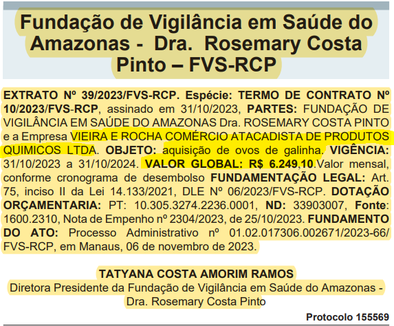 Amazonas – A empresa Vieira e Rocha Ltda, do empresário Diego Rocha Nóbrega, que durante a pandemia da COVID-19 lucrou mais de R$ 40 milhões fornecendo usinas de oxigênio para a Secretaria de Estado de Saúde do Amazonas (SES-AM), está no centro de uma polêmica nesta segunda-feira (23/9) após ganhar contratos de fornecimento curiosos: ovos de galinha, leite e cafezinho para outras secretarias estaduais. O caso, que levanta questionamentos sobre a idoneidade dos processos de licitação e a capacidade da empresa de transitar entre diferentes setores de fornecimento, expõe um novo capítulo de possíveis irregularidades na administração pública do Amazonas.