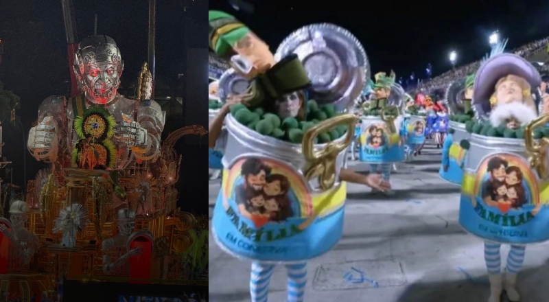 Escola de samba que homenageou Lula zomba de cristãos retratando família em lata de conserva; veja vídeo