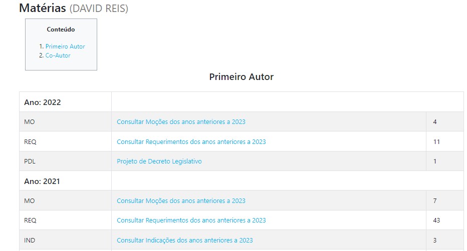 Durante o levantamento de 2023, o vereador David Reis (Avante) não apresentou nenhum projeto de lei, evidenciando uma lacuna na representação legislativa.