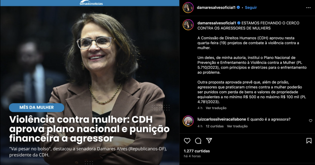 A outra proposta aprovada, o PL 4.781/2023, vai além da pena de prisão e prevê punições financeiras aos agressores. Pelo texto, aqueles que cometerem crimes contra mulheres poderão perder bens e valores de propriedade, com multas que variam entre R$ 500 e R$ 100 mil, dependendo da gravidade do caso. A medida busca atingir o bolso dos criminosos, oferecendo uma nova camada de punição e reparação às vítimas. “Não basta apenas prender. Queremos que esses agressores sintam o peso das suas ações também no patrimônio, para que pensem duas vezes antes de levantar a mão contra uma mulher”, explicou Damares.