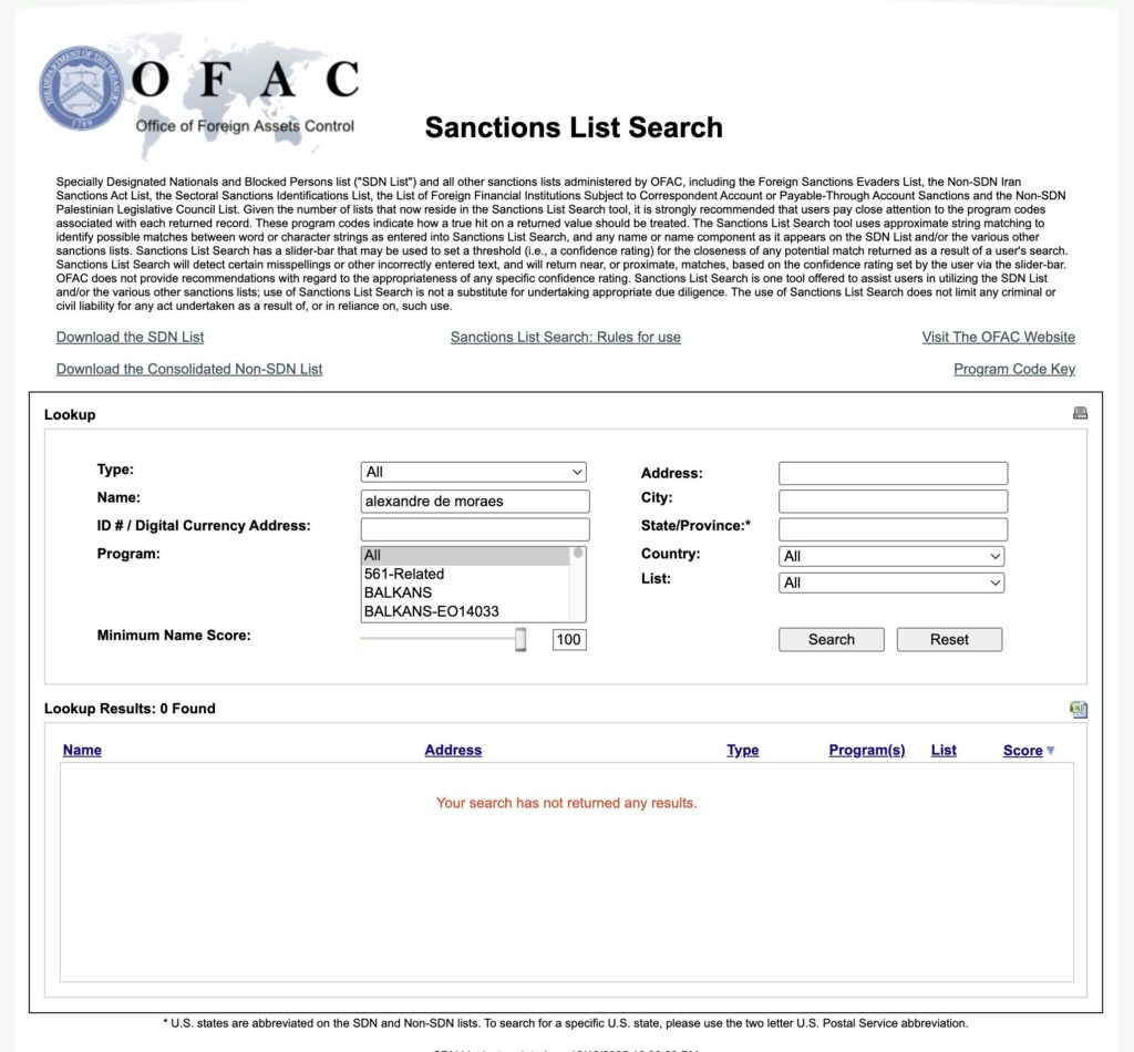 Brasil – O governo dos Estados Unidos removeu o ministro do Supremo Tribunal Federal (STF), Alexandre de Moraes, e sua esposa, Viviane de Moraes, da lista de sanções prevista na Lei Magnitsky. O ministro havia sido incluído no cadastro em julho, enquanto Viviane passou a integrar a relação no dia 22 de setembro.