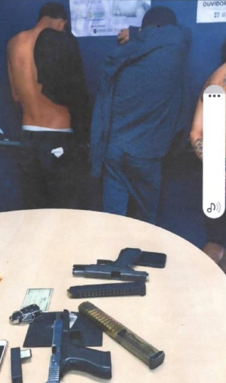 Com os presos foram encontradas duas pistolas calibre 9 milímetros com dois carregadores alongados contendo 43 munições. O carro que o grupo estava também foi apreendido pela equipe policial.