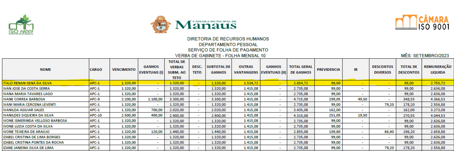 Ítalo trabalhou durante todo o mandato como assessor do vereador Carpê, sendo exonerado, coincidentemente, dia 31/12/2023, deixando os quadros oficiais de remuneração no ano da campanha eleitoral.