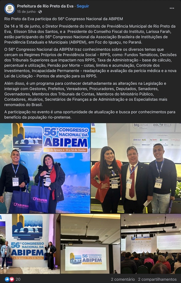 Agora, a ostentação dos gestores do Instituto previdenciário de Rio Preto da Eva tem chamado atenção não apenas do TCE-AM, como também do Ministério Público Federal (MPF-AM), a Polícia Civil e Federal, que devem conduzir as investigações sobre as denúncias e crimes previdenciários que possam estar ocorrendo em Rio Preto da Eva.