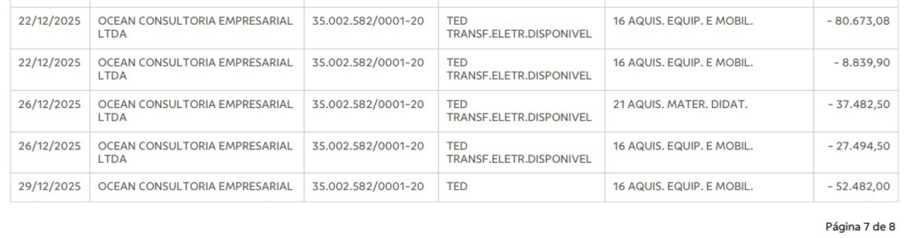 A cronologia dos pagamentos levanta suspeitas graves de desvio de finalidade e tentativa de liquidar orçamento antes do fechamento do ano fiscal. Em um intervalo de apenas uma semana — entre o Natal e o Ano Novo — a Prefeitura despejou o dinheiro na conta da Ocean: