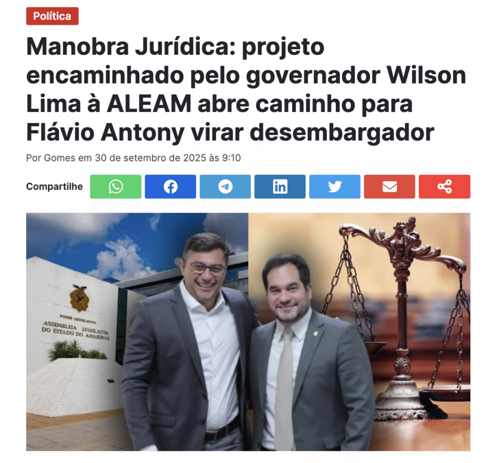 Manobra Jurídica: projeto encaminhado pelo governador Wilson Lima à ALEAM abre caminho para Flávio Antony virar desembargador