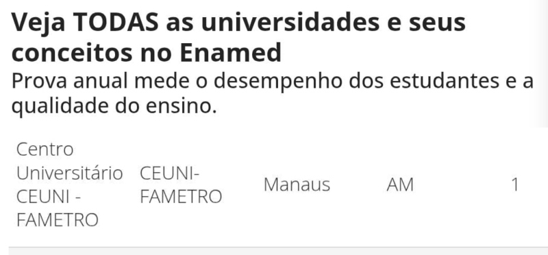 Com conceito 1 — a nota mais baixa possível, equivalente a um vexame total —, o curso da instituição comandada por ela integra a lista dos 107 cursos de medicina reprovados no Brasil, entre 351 avaliados pelo MEC. Isso significa que, a partir de 2026, a Fametro enfrentará sanções pesadas: redução drástica de vagas, risco de suspensão de vestibulares e até intervenção federal se não houver melhora imediata. Enquanto o Amazonas clama por mais médicos qualificados para atender o interior e fortalecer o SUS, a principal faculdade de saúde da capital entrega profissionais formados com qualidade questionável.