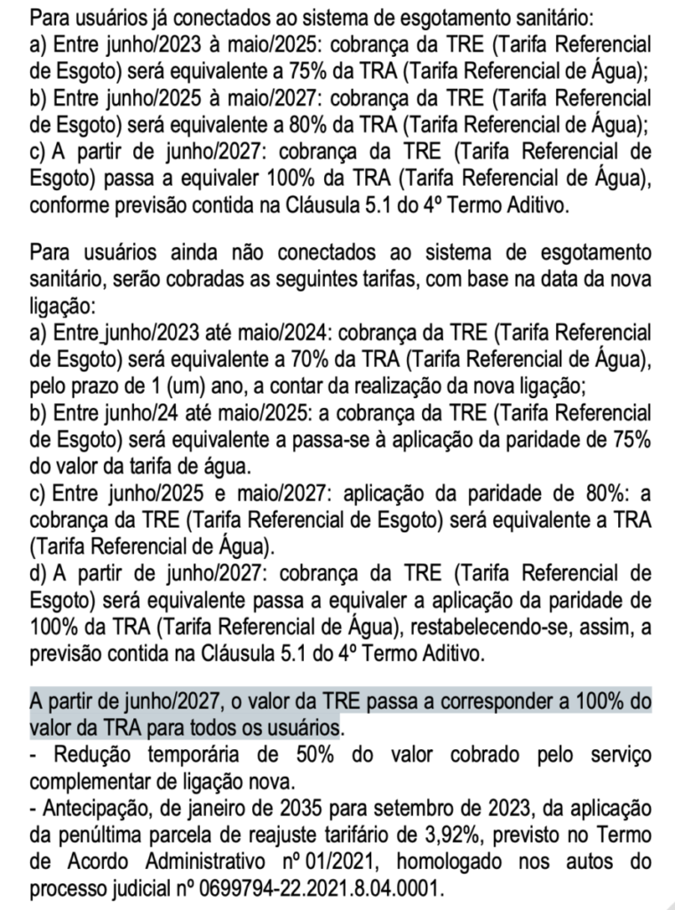 O ANEXO ÚNICO do TERMO DE AJUSTAMENTO DE GESTÃO – TAG, especificamente no item 2.1.1. DOS ESTUDOS PARA REVISÃO DA TARIFA DE ESGOTO e PARA A REVISÃO DA TARIFA DE DISPONIBILIDADE APLICÁVEL À CLASSE INDUSTRIAL, contém a seguinte disposição: