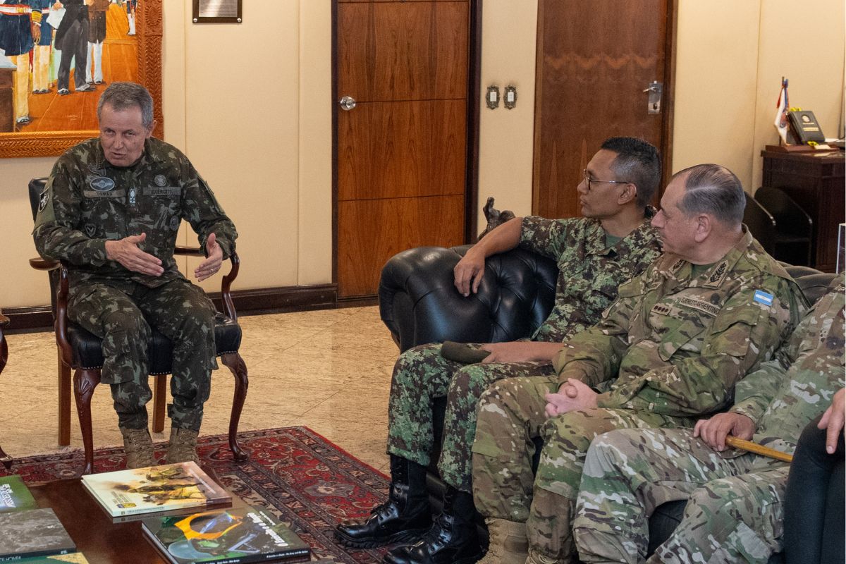 Brasil – No dia 24 de agosto, o Exército Brasileiro promoveu, pela primeira vez, uma reunião de integração com todos os comandantes de exércitos da América do Sul. Realizada no Quartel-General do Exército, em Brasília, a reunião teve como objetivos estreitar ainda mais a união entre as forças participantes, tratar de temas de interesse mútuo e aprofundar as relações institucionais por meio da manutenção de intercâmbios e programas de cooperação.