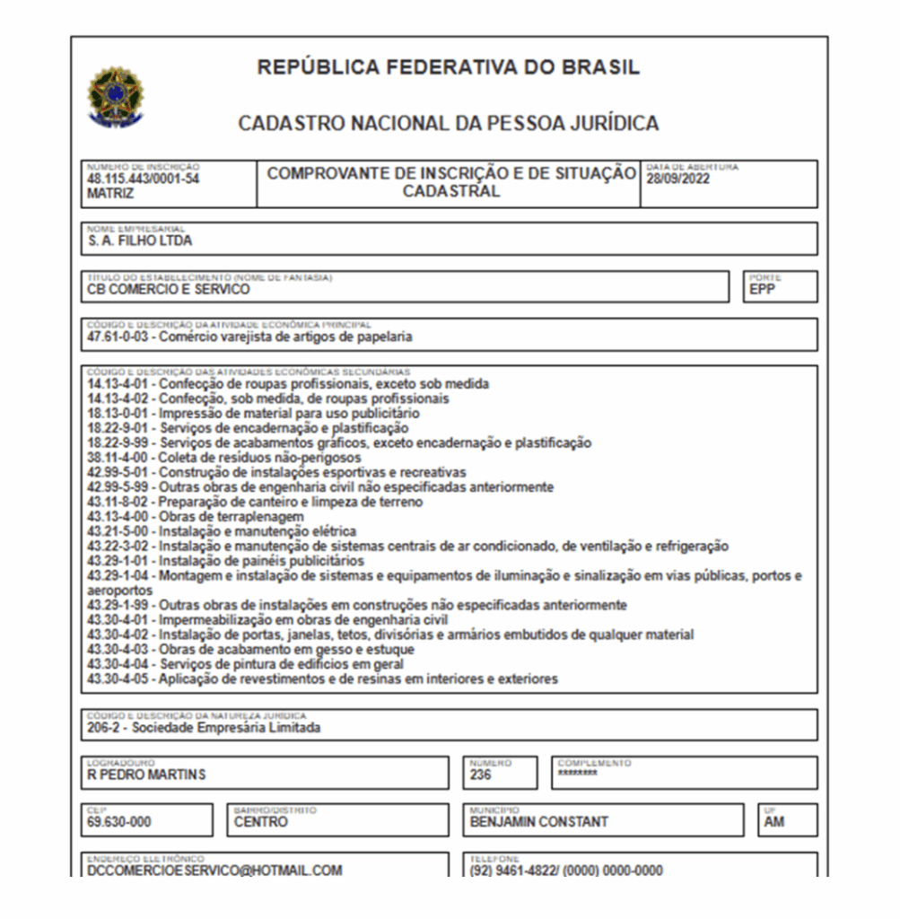 S.A. FILHO LTDA-EPP, sob o nome fantasia CB Comércio e Serviço, que atua no comércio varejista de artigos de papelaria e serviços gráficos;