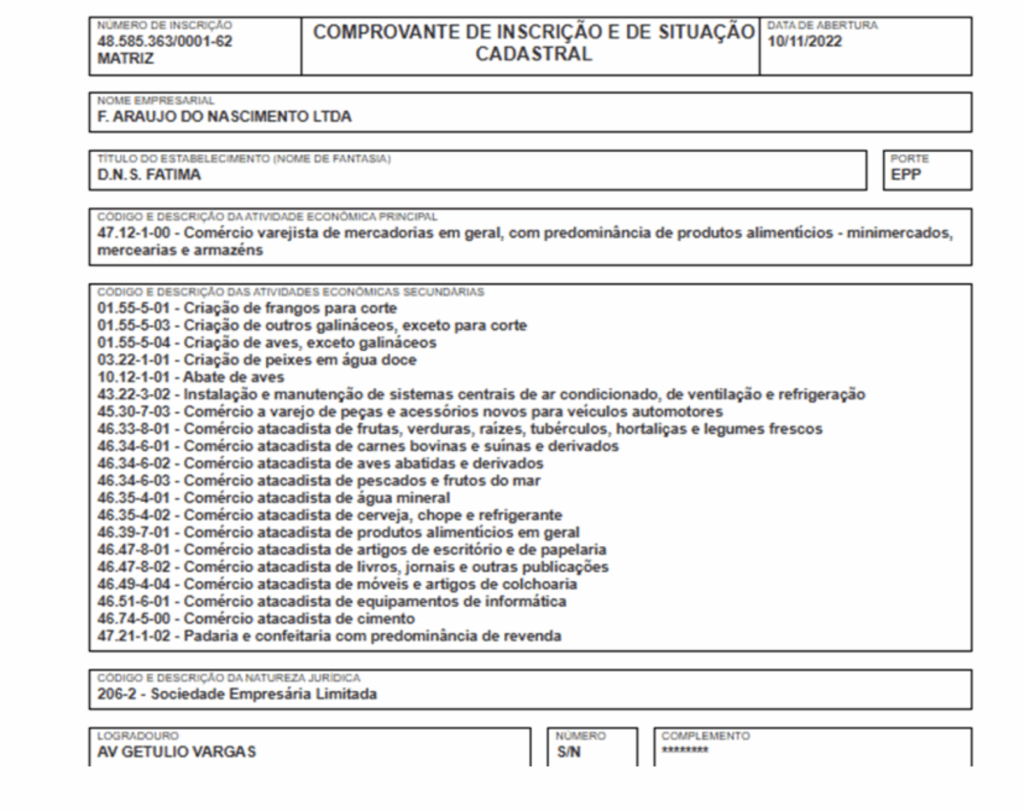 F. Araújo do Nascimento LTDA, que tem como foco o comércio varejista de mercadorias, produtos alimentícios e outras atividades agropecuárias e técnicas diversas.