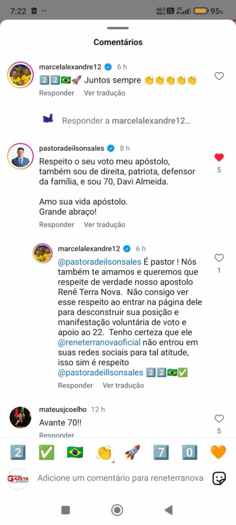 Entretanto, a discussão não parou por aí. O vereador Marcel Alexandre, também apóstolo da mesma igreja que René, entrou no debate de maneira mais hostil. Em resposta ao comentário de Adeilson, ele questionou a falta de respeito por parte do pastor ao se manifestar contrariamente ao apóstolo René. “Não consigo ver esse respeito ao entrar na página dele para desconstruir sua posição”, declarou Marcel, evidenciando um clima de tensão entre os dois líderes religiosos.